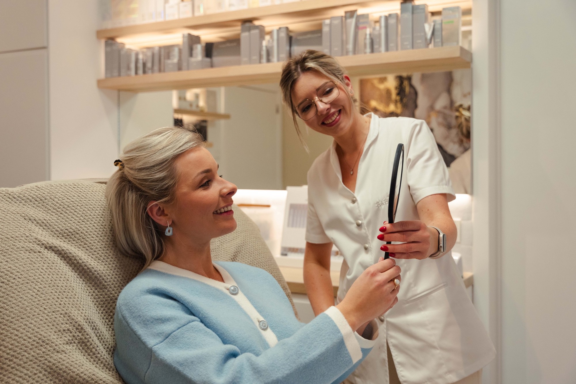 ... in alle klasse en stijl door zaakvoerster Melissa en haar collega Joyce. U wordt met zorg, precisie en professionaliteit begeleid en verzorgd – met zichtbare resultaten voor elk huidtype. Wij verwelkomen u graag in een sfeervol en rustgevend interieur.