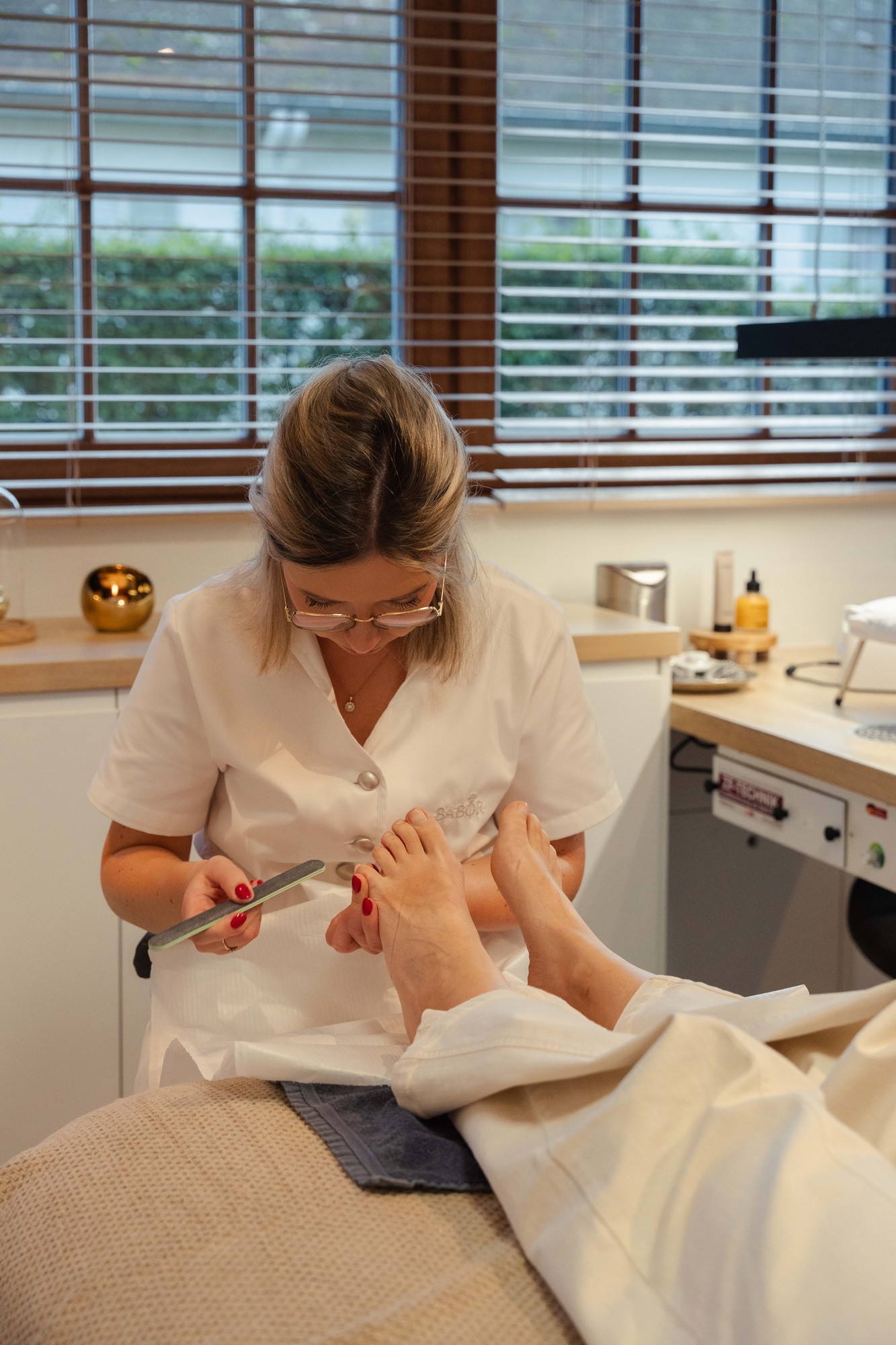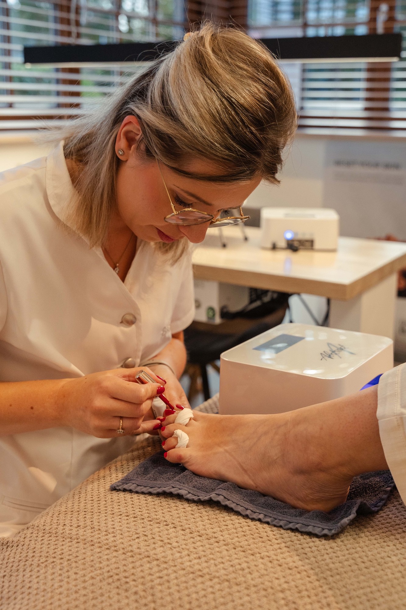 Medische pedicure met nagellak